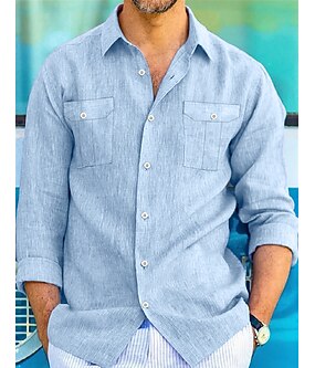 男性用 シャツ リネンシャツ サマーシャツ ビーチウェア カジュアルシャツ ボタンアップシャツ 平織り バケーション 家 ホワイト ピンク ネイビーブルー スカイブルー 長袖 ラペル 春夏 衣類