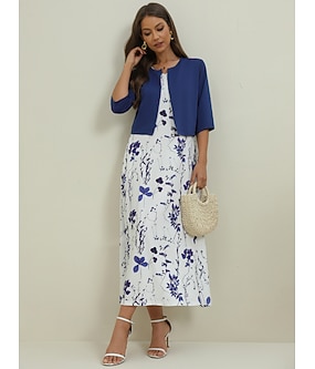 ウィメンズミディドレス ツーピースドレスセット カジュアルドレス プリントドレス デイリーバケーション ファッション エレガント ポケットプリント クルーネック 半袖 フローラル レギュラーフィット ブラック ネイビーブルー グリーン サマー スプリング S M L XL XXL