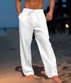 男性用 ズボン サマーパンツ ビーチパンツ ドローストリング プリーツ まっすぐな足 平織り 履き心地よい 高通気性 結婚式 カジュアル 日常 ファッション クラシック ブラック ホワイト