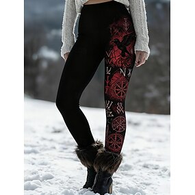 女性用 チノパン レギンス 心地よいレギンス 旅行度假风 ヴィンテージ エスニック 全長 ハイウエスト グラフィック レタード プリント 保温 快適 伸縮性あり カジュアル 日常 バケーション ブラック 秋 冬 スリムフィット