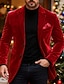 男性用 ブレザー ベルベットブレザー ビジネス カクテルパーティー ウェディングパーティー ファッション カジュアル 春 & 秋 コットン100% カラーブロック ポケット ボタン 快適 シングルブレスト ブレザー ルビーレッド ロイヤルブルー グリーン