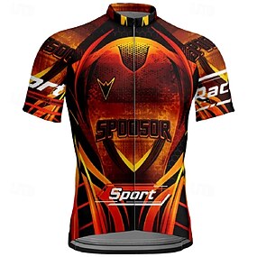 男性用 サイクリングジャージー 文字&番号 半袖 バイク Tシャツ ジャージー 3つのリアポケット付き マウンテンサイクリング 速乾性 人間工学デザイン ウィッキング 高通気性 スポーツ ブラック イエロー レッド 衣類