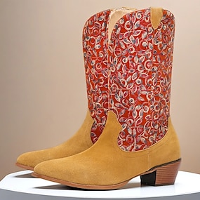 メンズウエスタンカウボーイブーツ、花柄刺繍入り - 牧場、フェスティバル、パーティーに最適なレトロな乗馬スタイルのプルオンミッドカーフシューズ