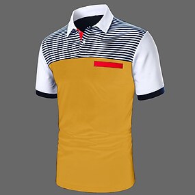 男性用 ゴルフシャツ ゴルフポロシャツ ワーク カジュアル ラペル 半袖 ベーシック 近代の カラーブロック パッチワーク ボタン 夏 春 レギュラー ホワイト イエロー ルビーレッド ダークグリーン グレー ゴルフシャツ