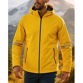 男性用 ハイキング ジャケット スポーツジャケット レインコート アウトドア フリースライナーつき 防水 速乾性 ライトウェイト ハイキングの服装 ハイキングウェア 冬 秋 ジャケット テニス ゴルフ ランニング 純色 ブラック イエロー レッド