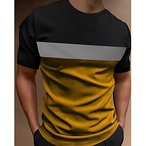 男性用 カラーブロック ポロ 半袖 ポロシャツ 襟付きシャツ カジュアル 学校 アウトドア スポーツ デイリーウェア 3Dプリント 夏 春 秋 イエロー ルビーレッド ブルー