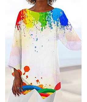 女性用 Tシャツ フラワー タイダイ ファッション 長袖 ラウンドネック レギュラートップス バケーション 週末 プリント イエロー ネイビーブルー ブルー 春 & 秋