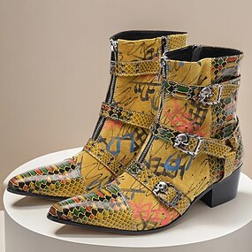 メンズのマルチカラーのスネークプリントブーツ - スタイリッシュな男性のためのユニークなデザインの牛革ブーツ - ファッショナブルな夜のお出かけ、パーティー、トレンディなイベントに最適