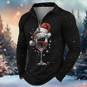 クリスマス 男性用 クリスマス柄 ポロ 長袖 折襟 近代の レジャー 祝日 カジュアル/普段着 ジッパー 3Dプリント 春 秋 冬 ブラック グリーン ワイン