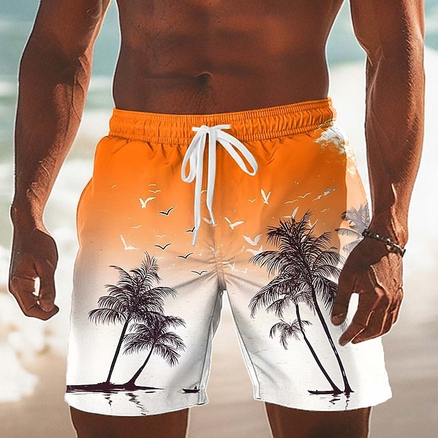 男性用 ココナッツの木 グラデーションカラー 熱帯植物 スイムトランク スイムショーツ ボードショーツ ミディアムウエスト ハワイアン ビーチでの休暇 サイドポケット メッシュライニング 伸縮性のあるドローストリングウエスト デザイナー 衣類 #10050671