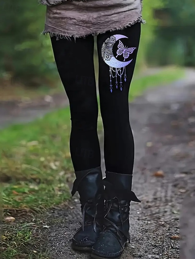 女性用 バイキング チノパン レギンス 心地よいレギンス 旅行度假风 ベーシック カジュアル 全長 ハイウエスト バタフライ MOON プリント 保温 快適 伸縮性あり カジュアル 日常 ストリート ブラック 秋 冬 スリムフィット #10150409
