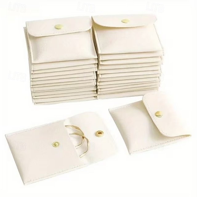 スナップデザインのPUレザージュエリー収納バッグ10個入り。3.15 x 3.15インチ。リング、ネックレス、様々な色のアクセサリーの収納に最適です。 #10466047