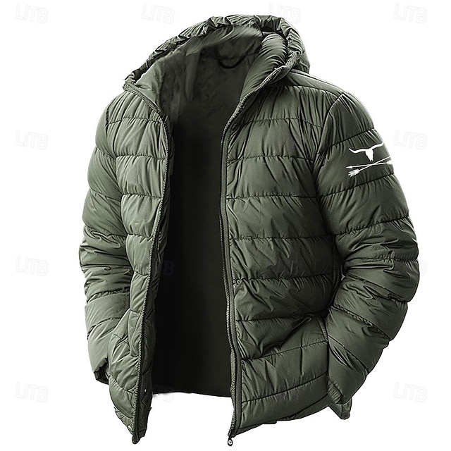 男性用 Arrow カウプリント 冬物コート ダウン パフジャケット 保温 防雨 ライトウェイト カジュアル アウトドア 日常 パッド入りキルティングフードジャケット 秋 冬 長袖 ブラック ルビーレッド ロイヤルブルー #10905639