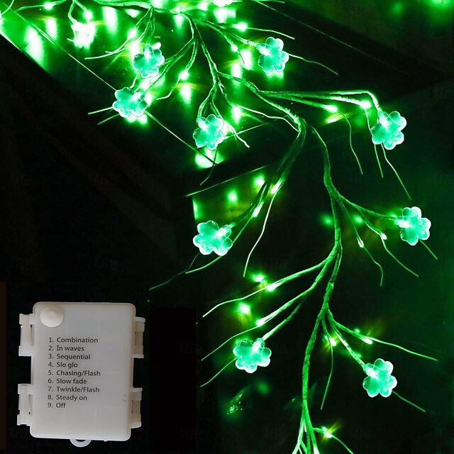 聖パトリックの日、アイリッシュクローバーライト(1.8m、45LED、AAA8電池ボックス付き)、屋内、寝室、リビングルーム、ダイニングルーム、パーティー、お祭りの雰囲気作り、装飾小道具 #11202886