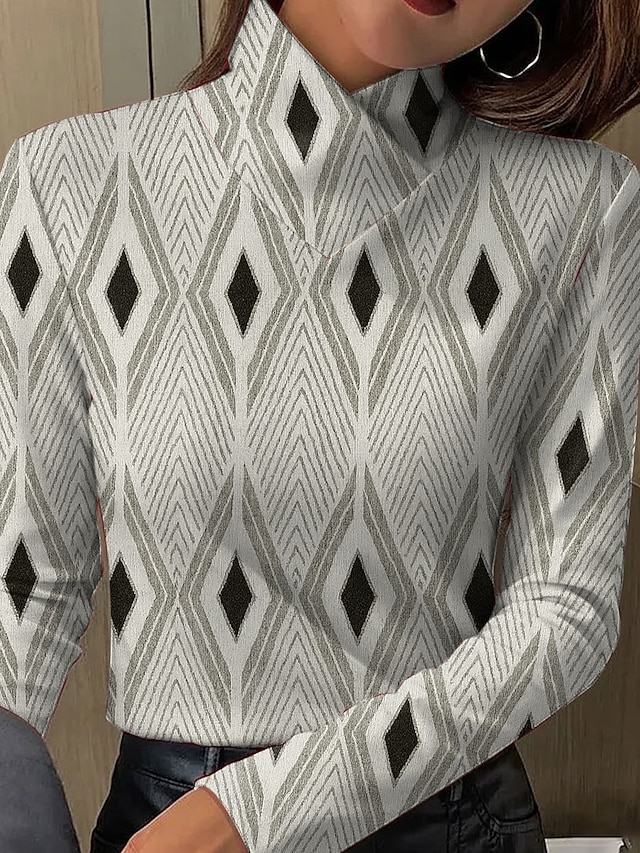 女性用 Tシャツ プリント グラフィック 幾何学模様 ゼブラ柄 エレガント ヴィンテージ スタイリッシュ 長袖 タートルネック ハイネック レギュラートップス 日常 ブラック グリーン ベージュ 春 秋 冬 #11254313