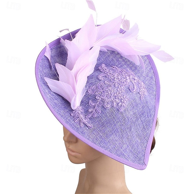 ヘッドドレス フェイクリネン フェドーラハット ウェディング バースデー ティーパーティー ホースレース カクテル エレガント ヴィンテージ 可愛い 羽根のヘッドピース ヘッドウェア #12050588