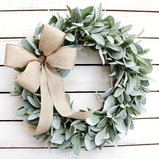 玄関用のクリスマスリース、人工の緑の羊の耳の葉のガーランド、フェイク植物のつる、庭のドアの吊り下げ、リビングルームと窓の壁の装飾 #12232127