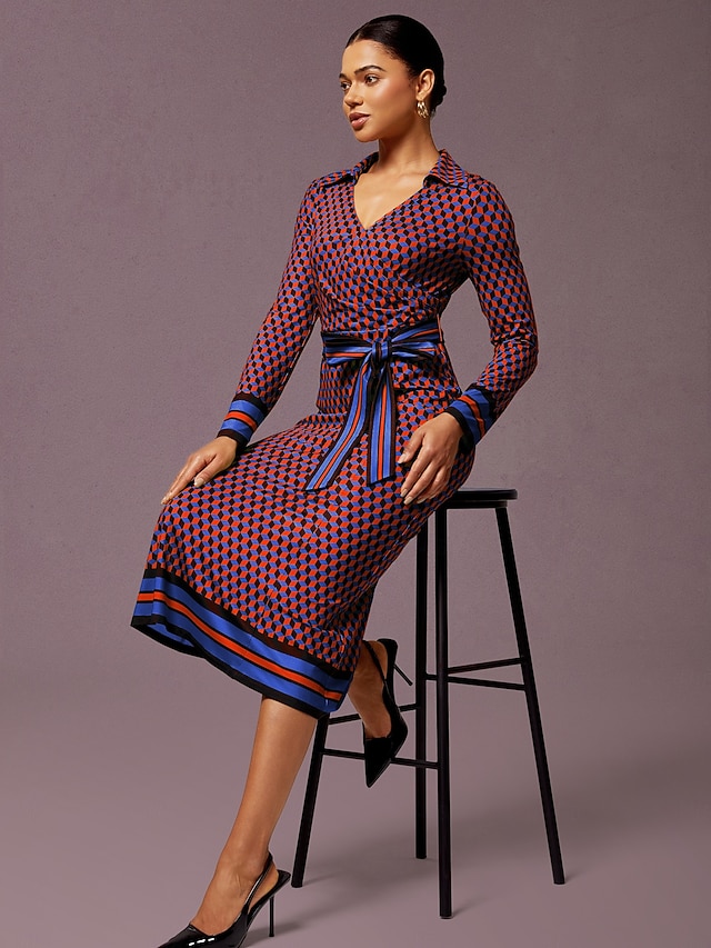 レディース ローズレッド 3D 幾何学プリント ドレス ウエストハイ ストレッチ 快適 エレガント ヴィンテージ スタイリッシュ マーメイド デイリー パーティー 仕事 秋 #12386265
