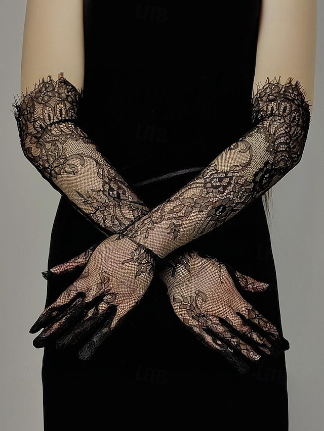 ウィメンズ マルディグラ レース グローブ、ブラックとホワイトあり、エlegantなデザイン カーニバル、仮面舞踏会、結婚式に最適 #12603009