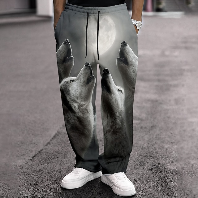 男性用 動物 オオカミ 月光 スウェットパンツ ズボン カジュアルパンツ ミディアムウエスト ヴィンテージレトロ アウトドア ハンティング いい結果 伸縮性のあるドローストリングウエスト ポケット付きストレートレッグパンツ 春 秋 3Dプリント ブルー グレー #13086800