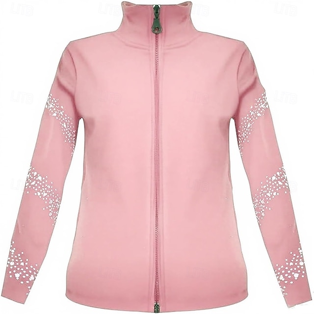 フィギュアスケート フリース ジャケット レディース ガールズ アイススケート ジャケット トップス ブラック ストレッチ トレーニング 競技 スケートウェア 保温 暖かい クリスタル/ラインストーン 長袖 アイススケート フィギュアスケート #13241261