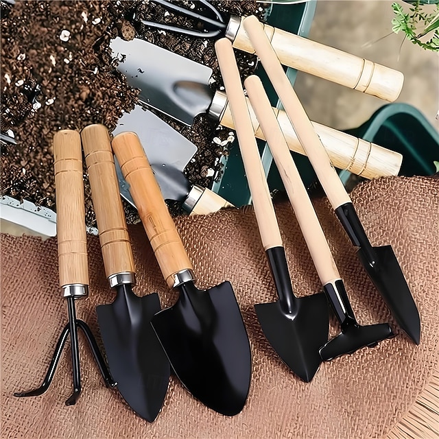 ミニガーデニングツール6点セット 持ち運び可能な小型ガーデニングツール(ハンドル付き) シャベル、熊手、室内ガーデニング、植栽、花用ツール #13514324