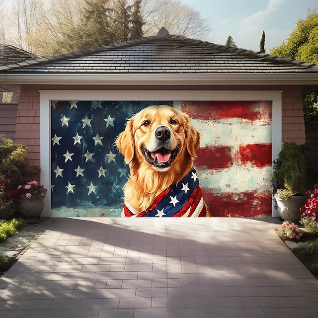 4th of Julyドア装飾ガレージドアカバー、アメリカの愛国的なワシの屋外バナー、大規模バックドロップ、ホリデー屋外ガレージドアの家の壁の装飾 #13848252