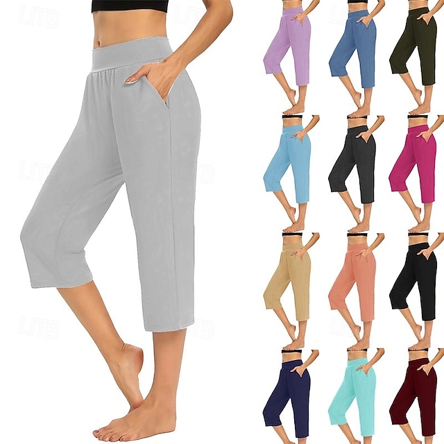 女性用 カプリショーツ チノパン 旅行度假风 ストリートファッション カジュアル ふくらはぎ丈 ミディアムウエスト 平織り ポケット 弾性ウエスト 快適 高通気性 伸縮性あり 日常 アウトドア ストリートウェア ワイン ダークグレー ブラック ダークネイビー 夏 春 レギュラー #13864708