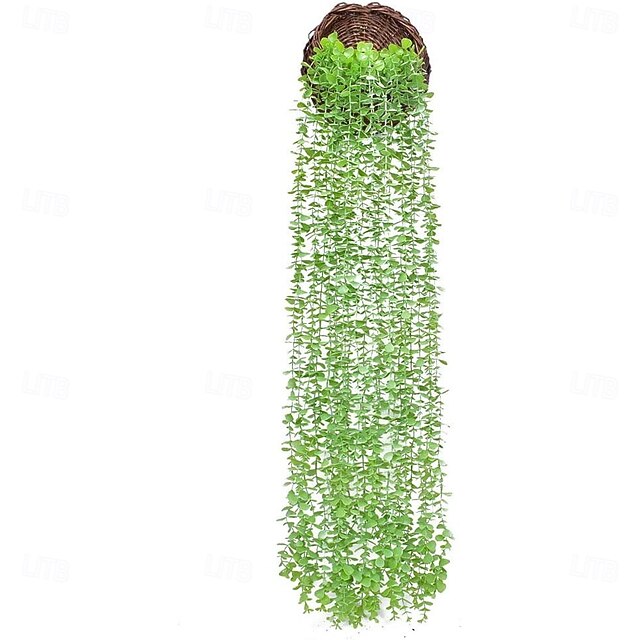 人工ユーカリのつる4本、フェイクグリーン吊り下げ式つる植物、天井装飾、リビングルーム、エアコンパイプラッピング、ホームデコレーション #14037089