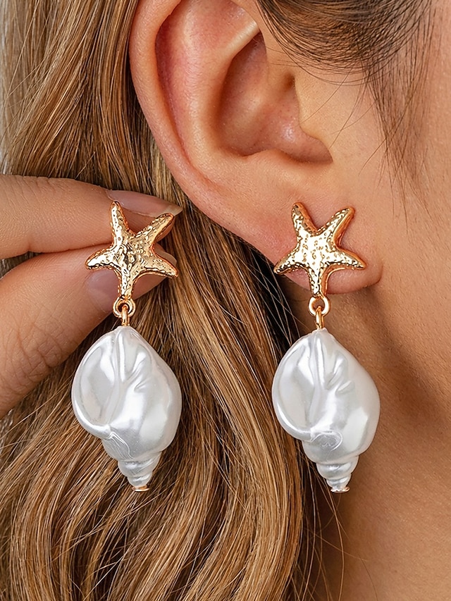 女性用ボヘミアンスタイルの合金製シェルイヤリング、コンクシェルペンダント、ビーチでの休暇や普段使いに最適、軽量でトレンディな女性用ジュエリー #14307811