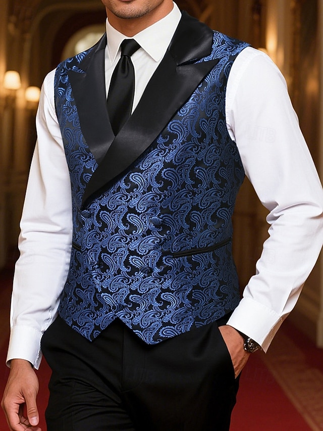男性用 ベスト チョッキ ジレ バケーション パーティー ビジネス ファッション カジュアル 春 秋 ポケット ボタン ポリエステル 快適 ペーズリー シングルブレスト 一つボタン ピークドラペル レギュラー ロイヤルブルー ベスト #14668077