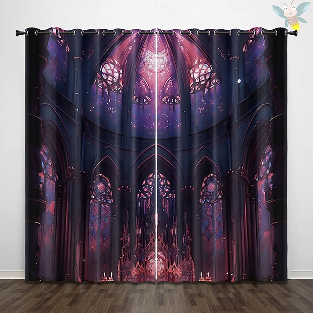 [デザインとパターン] 複雑な花柄の3Dデザインが施されたこれらのカーテンは、深い紫、ピンク、青のエーテル的な混合が施された壮大な大聖堂の内部からインスパイアを受けています。ステンドグラスのウィンドウトリートメントが、あなたのインテリアにゴシックなエレガンスと幻想的なタッチを加えます。