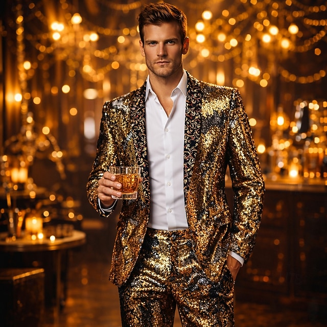 ディスコ 1980年代 タキシード スーツ&ブレザー ノッチドラペル ディスコ スパンコール 仮装 男性用 マスカレード パーティー/フォーマル プライドパレード プライド月間 成人 コート パンツ