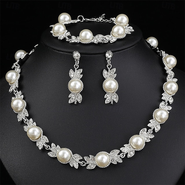 ジュエリーセット 3 ホワイト 真珠 クロム 1×ブレスレット イヤリング ネックレス 女性用 エレガント ヴィンテージ ファッション ビンテージ クラシック ジュエリーセット 用途 結婚式 パーティー 結婚式のゲスト #17701290