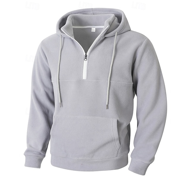 男性用 パーカー クォータージッパーパーカー フリースパーカー ブルー ブラック パープル ライトグレー ダックグレー フード付き 平織り ジッパー ポケット スポーツ 日常 祝日 ポリエステル ストリートファッション ベーシック カジュアル 秋 冬 衣類 パーカー トレーナー #18264764