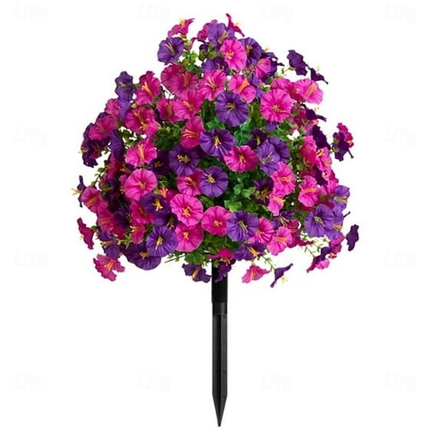 屋外の春の装飾用、人工造花8束。シルク製のカラフルな紫色のUV耐性リアルな造花で、屋外のポーチ、パティオ、庭、プランター、鉢、窓辺のプランターに最適です(ミックス)。