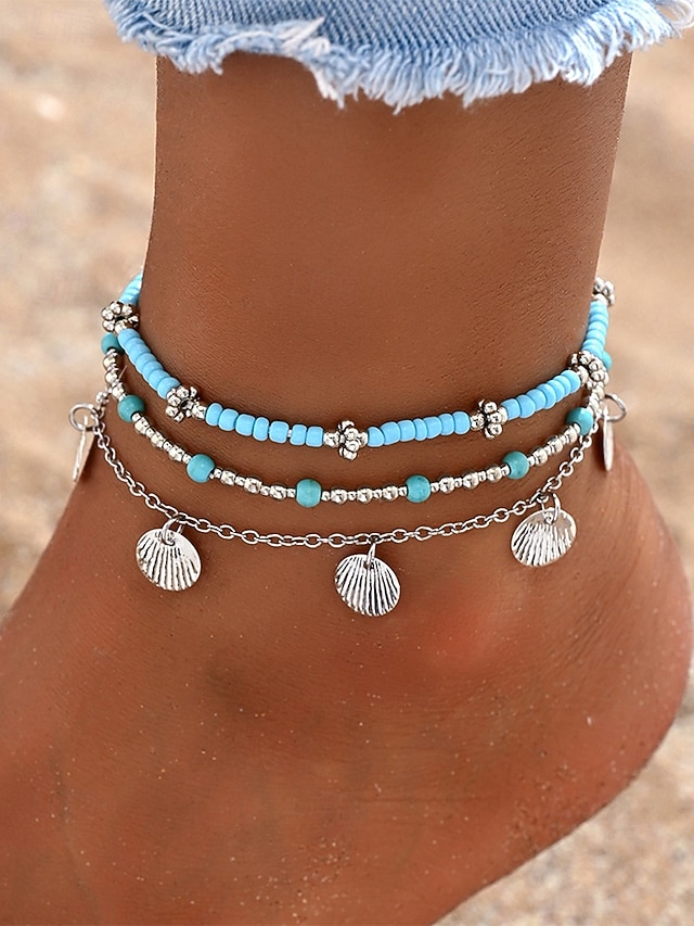 レディースボヘミアンビーズアンクレットブレスレット、カラフルな樹脂ビーズとチャームペンダント、軽量ビーチアンクルジュエリー、デイリーカジュアル、バケーション、リゾート、サマーウェアに最適。