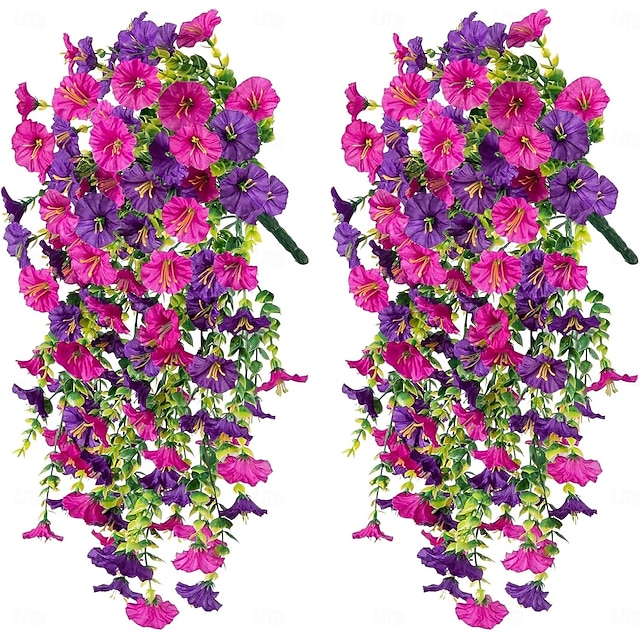 4個の吊り下げ式人工アサガオのつる、UV耐性造花、屋外用、玄関ポーチの庭の結婚式用の造花、造花のつる、夏の屋内屋外装飾 #19096720
