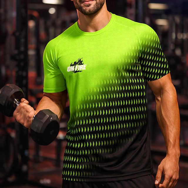 男性用 サッカーユニフォーム 幾何学模様 勾配 文字&番号 ランニングトップ アスレチックTシャツ 夏 半袖 UPF 50 速乾性 吸汗性 高通気性 トーナメント サッカー ジム ランニング しつけ用品 スポーツ グリーンとブラック スポーツウェア アクティブウェア #19854729