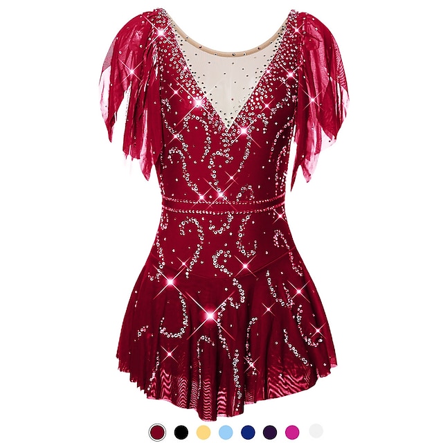 フィギュアスケート ドレス 女性用 女の子 アイススケート ドレス セット バイオレット ブラック ホワイト オープンバック スパンデックス ストレッチヤーン 高弾性 訓練 競技大会 スケートウェア 手作り ソリッド クラシック クリスタル・ラインストーン 半袖 アイススケート フィギュアスケート #7401215