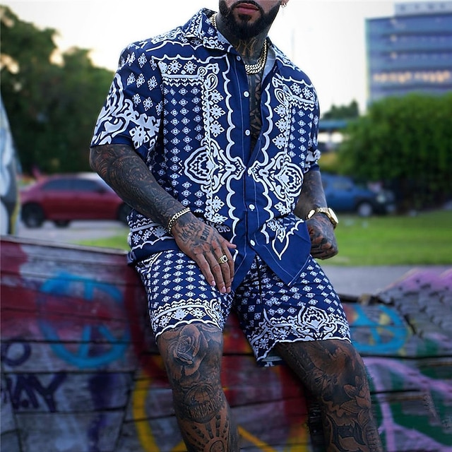 男性用 ペーズリー トライバル グラフィック シャツセット シャツ シャツセット アロハシャツ 半袖 折襟 ファッション ストリートファッション デザイナー アウトドア ストリート カジュアル プリント 夏 春 ルビーレッド ブルー #9604495