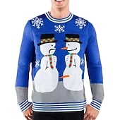 クリスマス 男性用 スノーフレーク柄 クリスマス・コスチューム Tシャツ 長袖 Tシャツ 3Dプリント クルーネック シャツ 陽気で明るい パーティー カジュアル 祝日 イエロー ルビーレッド パープル 春 & 秋 衣類 標準 S M L XL XXL XXXL
