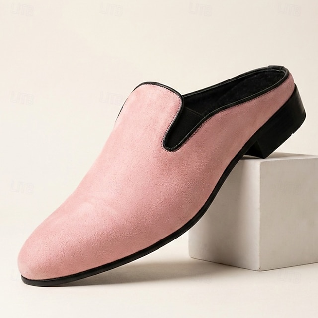 メンズ ピンク スエード ミュール ローファー スリッポン ファッション ドレスシューズ ソフトでエレガントなステートメント フットウェア 結婚式、パーティー、宴会、プロム、イブニング イベントに最適 #11662011