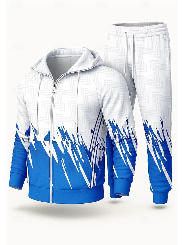 男性用 パーカー トラックスーツ 2ピーストラックスーツ ドローストリング ジッパーを閉める 幾何学模様 スーツウェア 秋 冬 ブルー ボウケーション 屋外 トラベル ライトウェイト ファッション 長袖 スポーツ アクティブウェア 伸縮性あり レギュラー #14540926