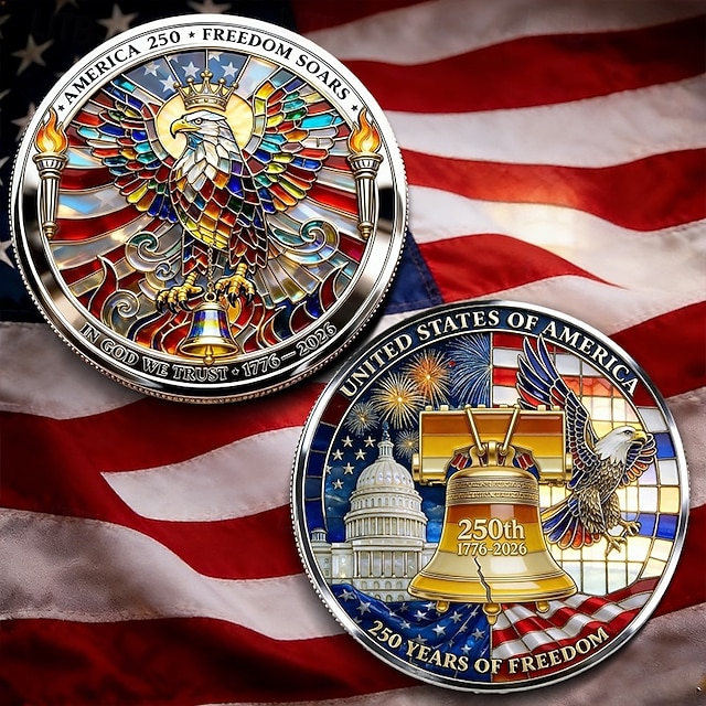 アメリカ建国250周年記念コイン - 1776-2026年 500周年記念限定コレクターズコイン。鷲、自由の鐘、アメリカ国旗がデザインされています。