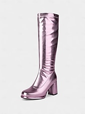 チャンキーヒールのゴールドメタリックプラットフォームゴーゴーブーツ(レディース) - ナイトライフ、パーティー、音楽フェスティバルに最適な1980年代のパンクディスコスタイルのブーツ #15360811