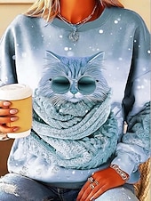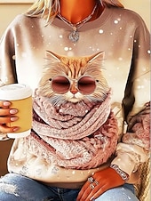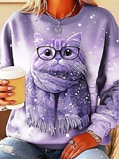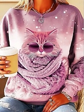 女性用 スウェットシャツ グラフィック 動物 猫 カジュアル 長袖 クルーネック レギュラートップス ストリート 日常着 カジュアル プリント ピンク パープル ブラウン グリーン 春 秋 冬 #19537551