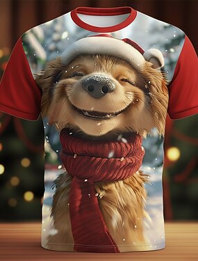 クリスマス 男性用 犬 サンタクロース Tシャツ 半袖 Tシャツ 3Dプリント クルーネック シャツ 日常 デザイナー アーティスティック バケーション パーティー ストリート ホワイト ルビーレッド オールシーズン 衣類 S M L XL XXL XXXL