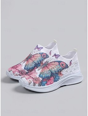 ラインストーン付きバタフライプリントレディーススリッポンスニーカー – 旅行、アウトドア、普段使いに最適な軽量で通気性の良いウォーキングシューズ