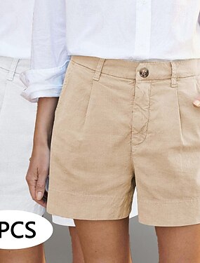 女性用 コットンブレンド チノパン ショーツ サマーショーツ 旅行度假风 ストリートファッション ベーシック ショート ナチュラルウエスト 純色 平織り ジッパー ポケット バックル 履き心地よい 通気性 ソフト 伸縮性なし 日常 ストリート お出かけ カーキ+ブラック カーキ+アーミーグリーン ホワイト+ネイビーブルー カーキ+ライトグレー 夏 春 レギュラー